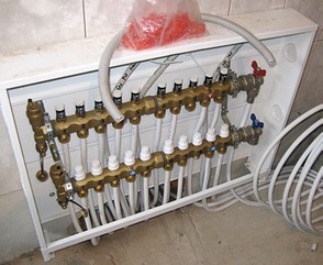 Труба теплого пола швейцарская TECE. Первый этаж, цоколь и все санузлы имеют теплый пол. Каждая зона теплого пола с индивидуальным термостатом. Все радиаторы подключены по схеме звезда (индивидуальный трубопровод от радиатора к коллектору).